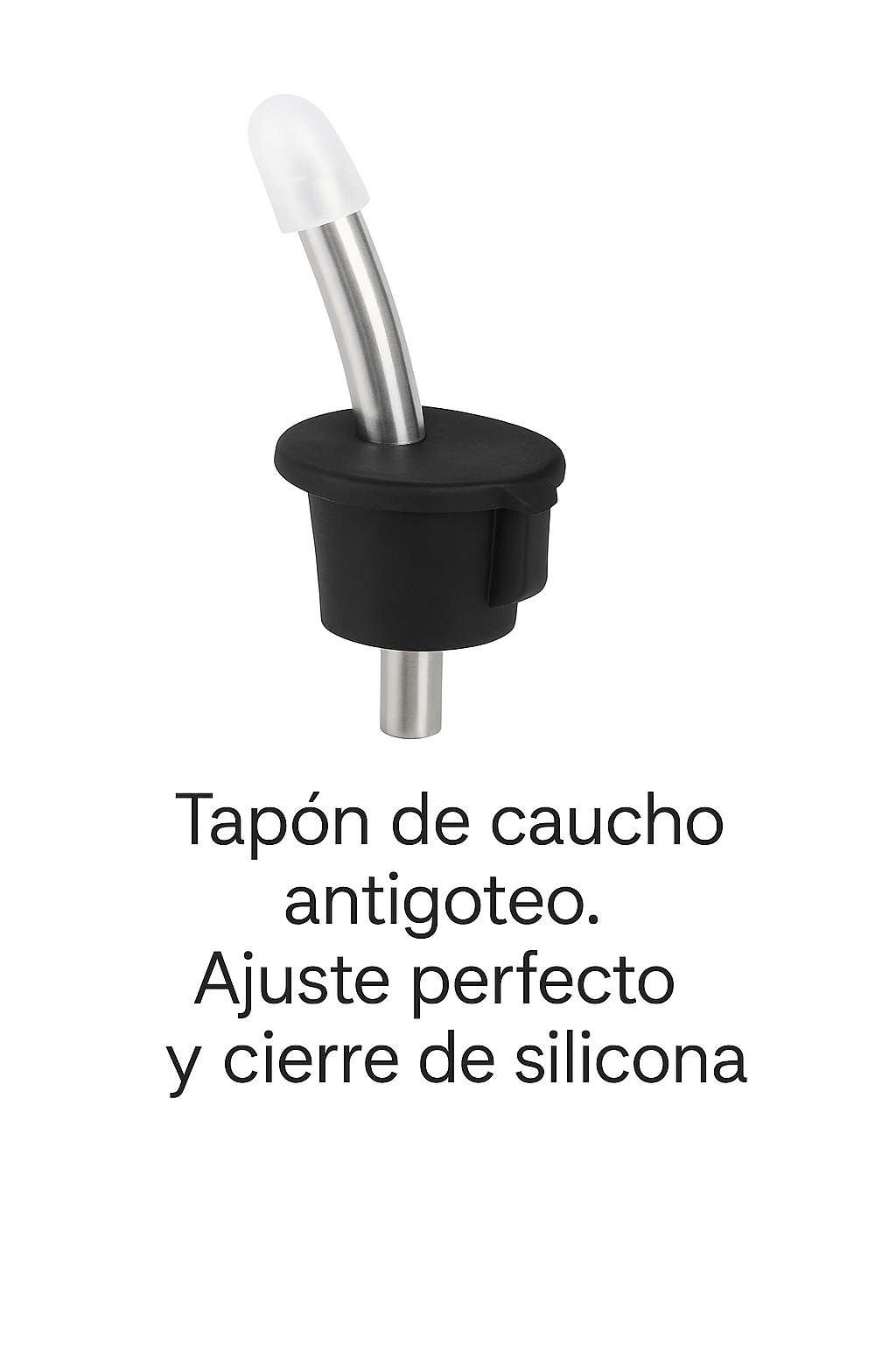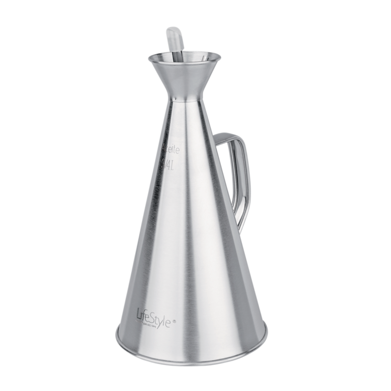 La aceitera «Azzayt» de LifeStyle está fabricada en acero inoxidable de alta calidad y cuenta con un tapón de caucho antigoteo, que asegura ajuste perfecto y cierre hermético con cierre de silicona, evitando derrames y conservando mejor el aceite.