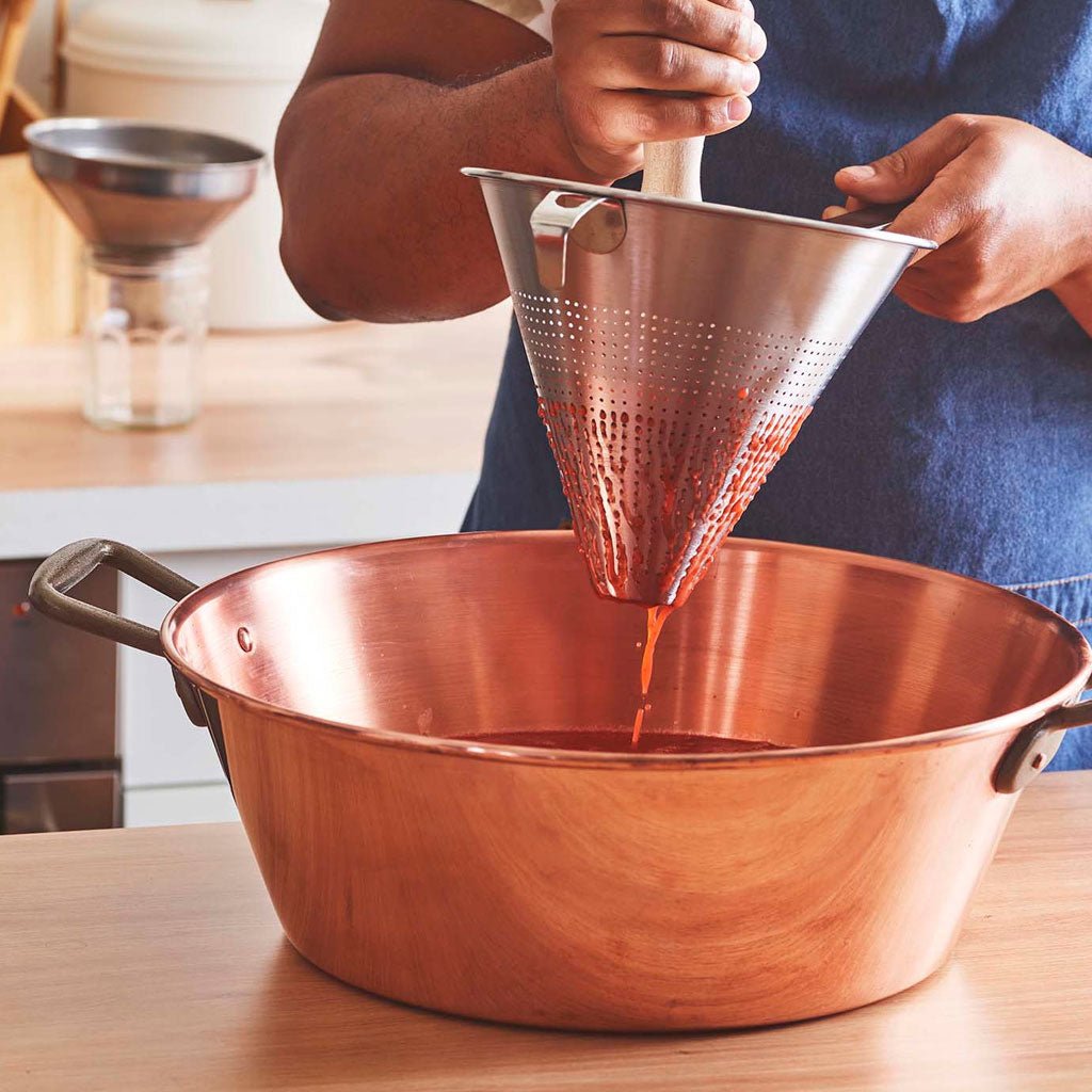 El colador chino LifeStyle está fabricado en acero inoxidable y cuenta con pestaña de apoyo para mayor estabilidad. Ideal para obtener caldos, cremas, purés o salsas con textura fina y sin grumos, disponible en varias medidas (Ø14, Ø16, Ø18 y Ø20 cm).