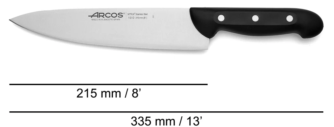 La serie de cuchillos Maitre está fabricada en acero inoxidable NITRUM®, con mangos de plásticos técnicos (PP) reforzados con remaches de acero inoxidable que aportan solidez y durabilidad. Su diseño ergonómico garantiza un agarre cómodo y seguro, ofreciendo precisión y resistencia en cada uso.