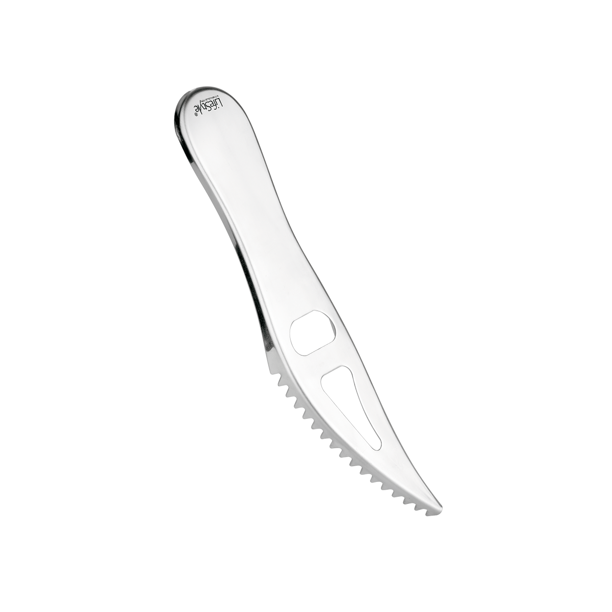 Escamador de pescado LifeStyle fabricado en acero inoxidable, con diseño dentado que retira las escamas de forma rápida y eficiente sin dañar la piel. Incluye mango ergonómico para un agarre cómodo y seguro.