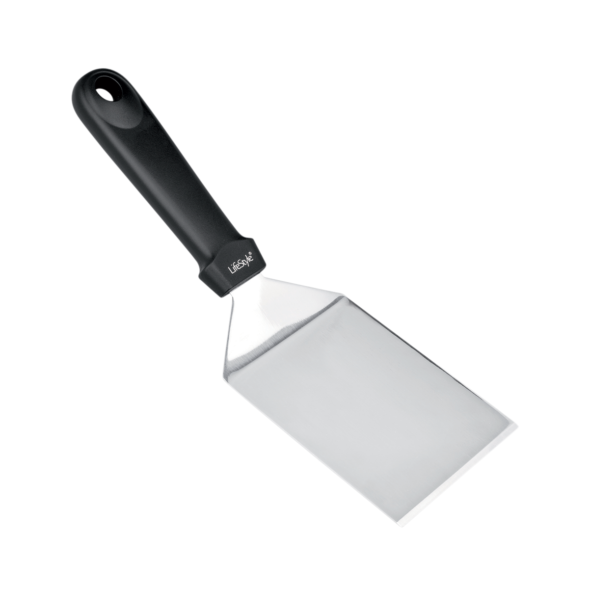 La espátula ancha LifeStyle está fabricada en acero inoxidable, con medidas de 8 x 13 cm. Especial para plancha, cuenta con una práctica forma de pato que facilita recoger y voltear los alimentos con mayor comodidad.