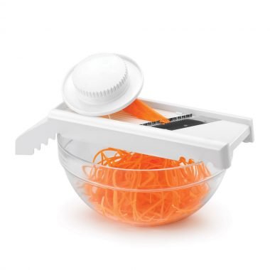 La mandolina Mandolino de Metaltex ofrece hasta 7 tipos de corte y rallado, ideal para preparar frutas y verduras de forma rápida y uniforme. Incluye un empujador de seguridad para un uso cómodo y protegido. Práctica, versátil y fácil de limpiar, es el aliado perfecto para la cocina diaria.