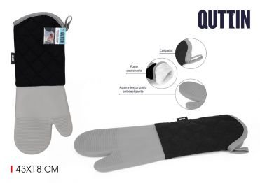 1. Superficie Texturizada Antideslizante: La manopla incorpora un dibujo en relieve que multiplica la fricción. Esto es vital cuando sacas una bandeja de asado pesada o un molde de cristal que resbala con facilidad. Con Quttin, la pieza se “pega” a la mano, evitando accidentes por resbalamiento.