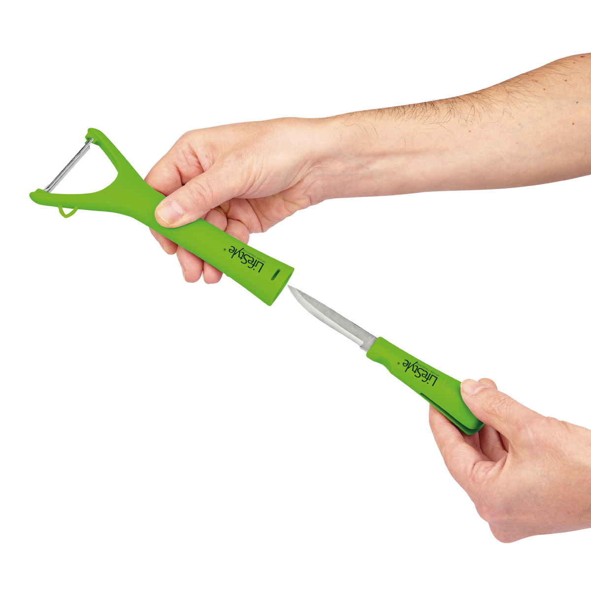 Pelador con puñal LifeStyle, fabricado en acero inoxidable, diseñado para ofrecer versatilidad en la cocina. Incluye un pelador práctico y un cuchillo de uso diario, ambos pensados para un uso cómodo y preciso. Su diseño compacto permite ahorrar espacio en la cocina.