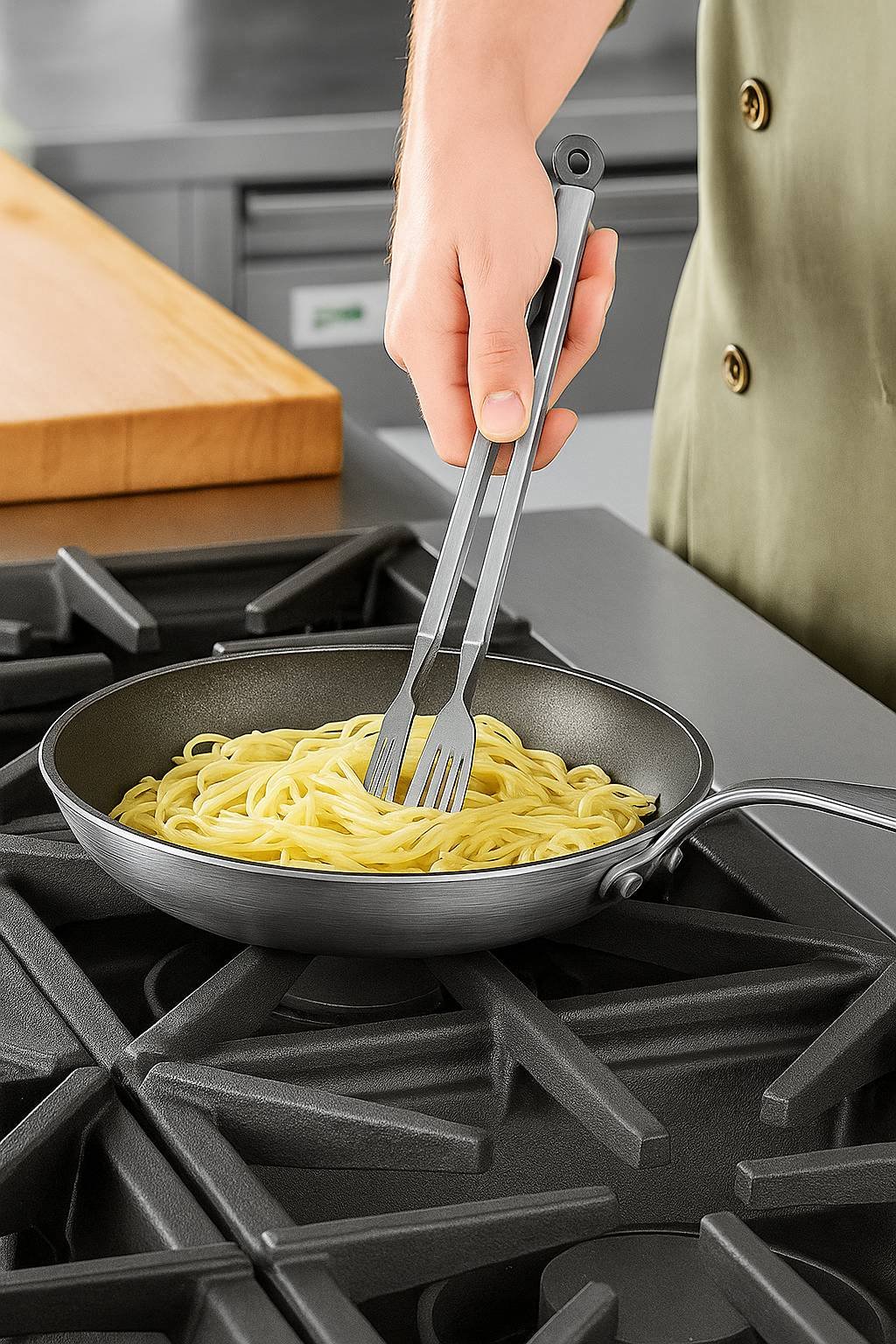 La pinza palas inox LifeStyle está fabricada en acero inoxidable, con asas de silicona libres de BPA que facilitan el agarre sin dañar superficies. Incorpora un cierre fácil para mayor comodidad y tiene una medida de 34 cm.