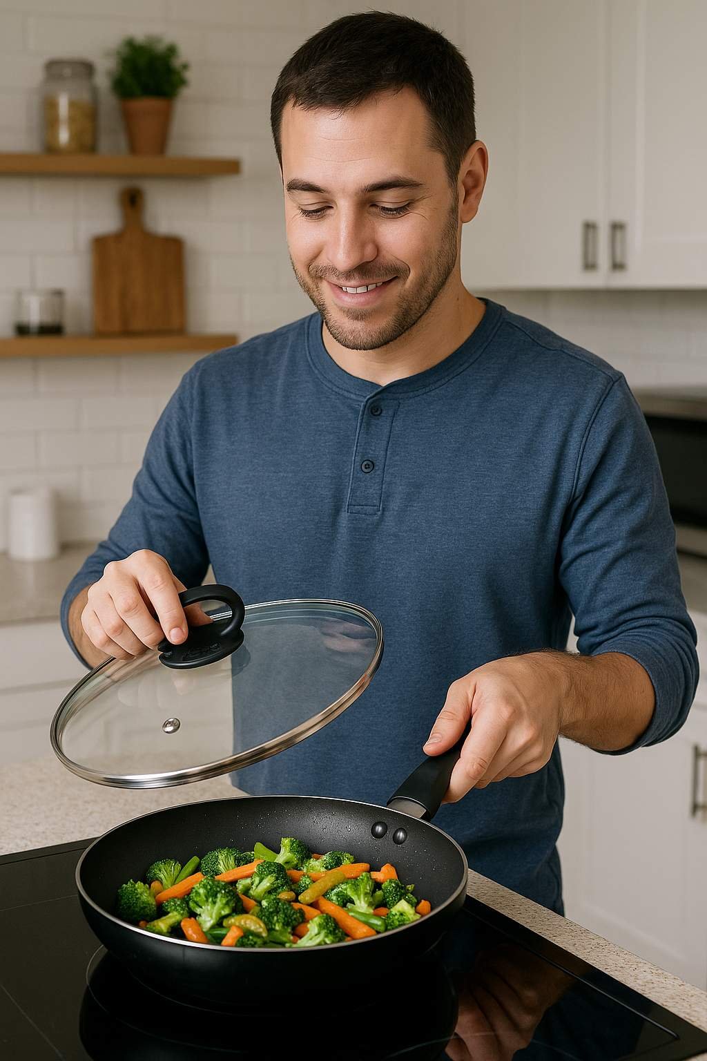 1. Coloca la tapa sobre la sartén u olla que estés utilizando.